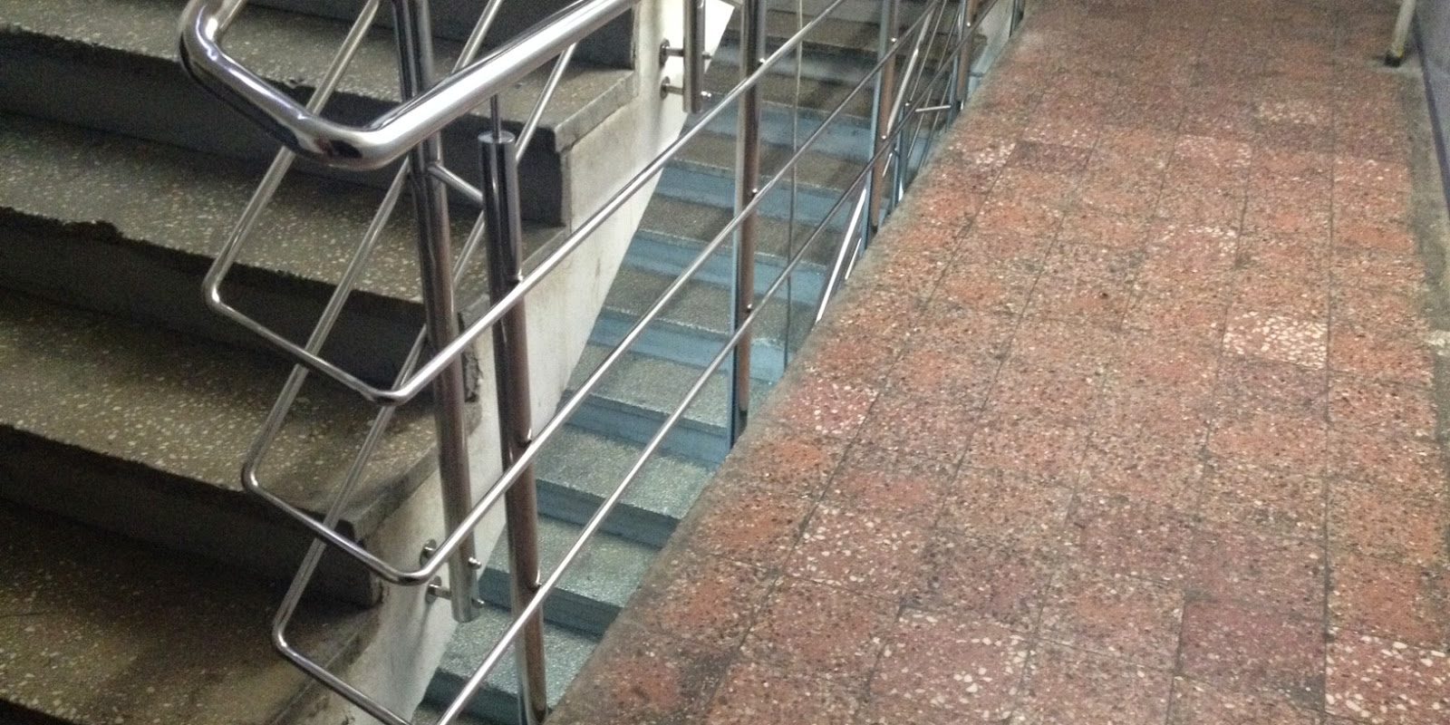 In urmatoarele fotografii veti gasi un model clasic de balustrada din inox cu 3 intermediare, montat de catre echipa noastra, in scara unui bloc: