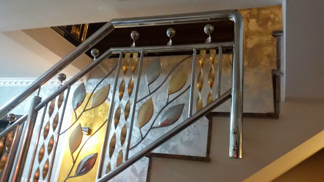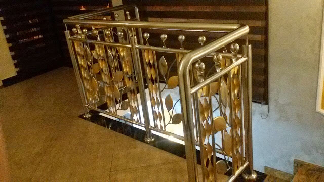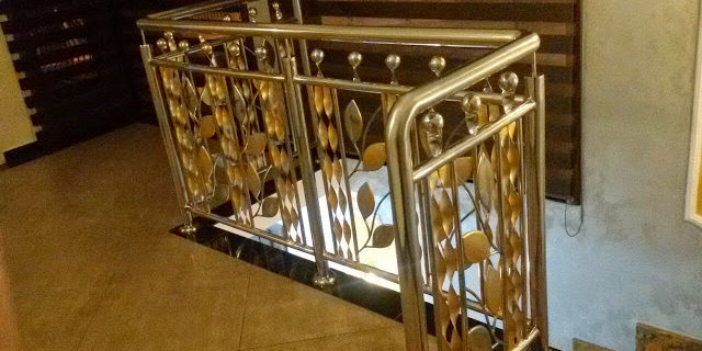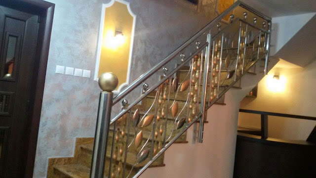 A optat pentru un model de balustrada inox, cu frunze din inox si pentru ca la noi avea posibilitatea de a opta si pentru inox colorat, acesta a dorit ca frunzele sa fie vopsite in culoarea aurie.