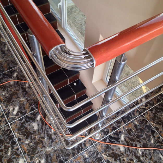 Din categoria modelelor de balustrade din inox cu patru intermediare, va prezentam in aceasta postare un model diferit de cel simplu datorita elementelor decorative folosite la confectionarea acestuia. Astfel, peste teava din inox s-a aplicat mana curenta din lemn masiv(lacuita cu nuanta aleasa de client) iar la intoarceri au fost aplicate coturi din sarma de…
