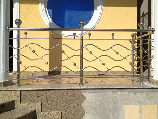 Balustrada a avut incluse patru intermediare din care, trei dintre ele au fost roluite, creand astfel modelul unor valuri in mijlocul carora au fost adaugate bile din inox.