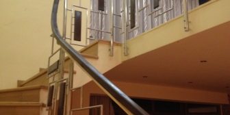 Mana curenta si stalpii din teava de 40 AISI 304 ,modelul din intermediare de 16, placile si mana curenta din stejar stratificat.