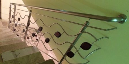 Pentru realizarea balustradei din inox satinat cu valuri inox si frunze stejar s-au folosit urmataorele materiale: