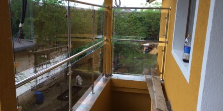Balustrada inox cu cleme inox si sticla securizata fumurie