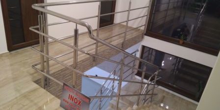 Balustrada inox model clasic cu 3 intermediare de 25mm diametrul.